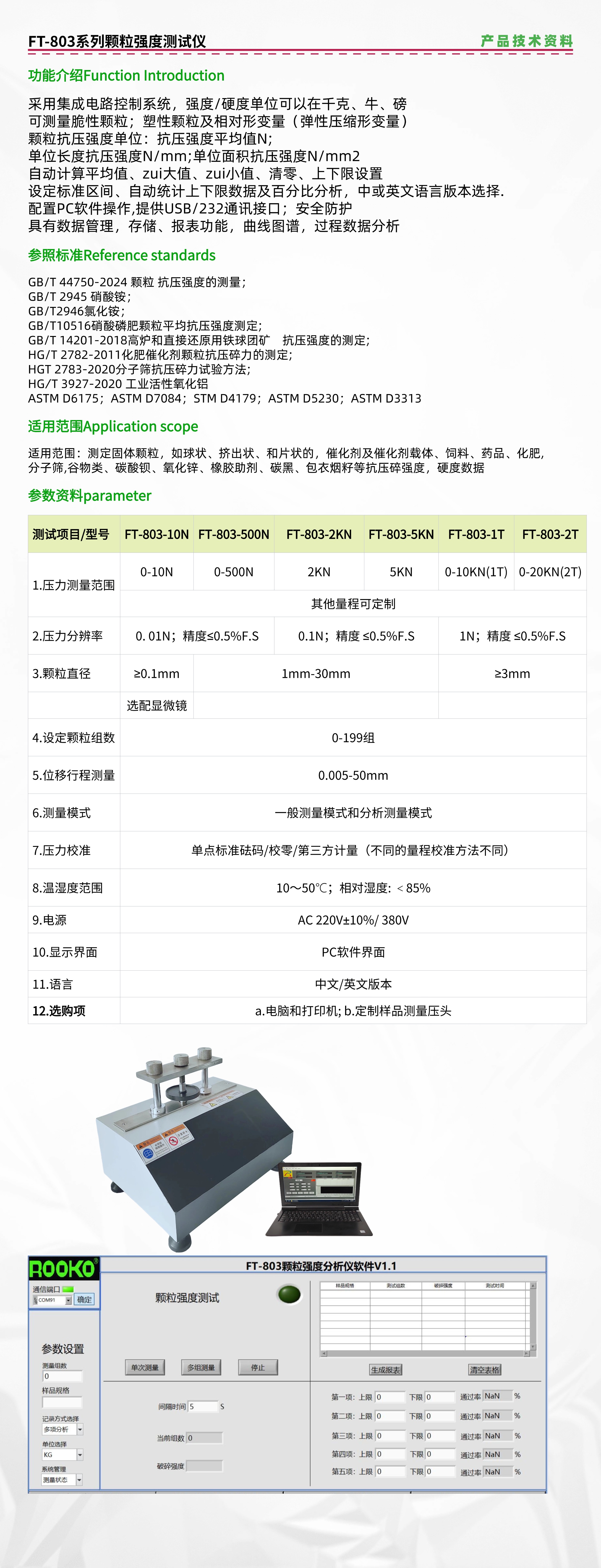 確定工藝參數(shù):在顆粒材料生產(chǎn)中,測定顆粒強度可幫助確定工藝參數(shù)。如在陶瓷生產(chǎn)中,通過測定坯體顆粒強度,可了解不同成型壓力、燒結(jié)溫度和時間等對顆粒強度的影響,從而優(yōu)化工藝,提高產(chǎn)品質(zhì)量。