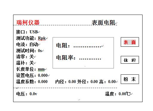 液晶顯示:電阻率,溫度,電流,電壓,壓強,樣品尺寸數(shù)據(jù) |