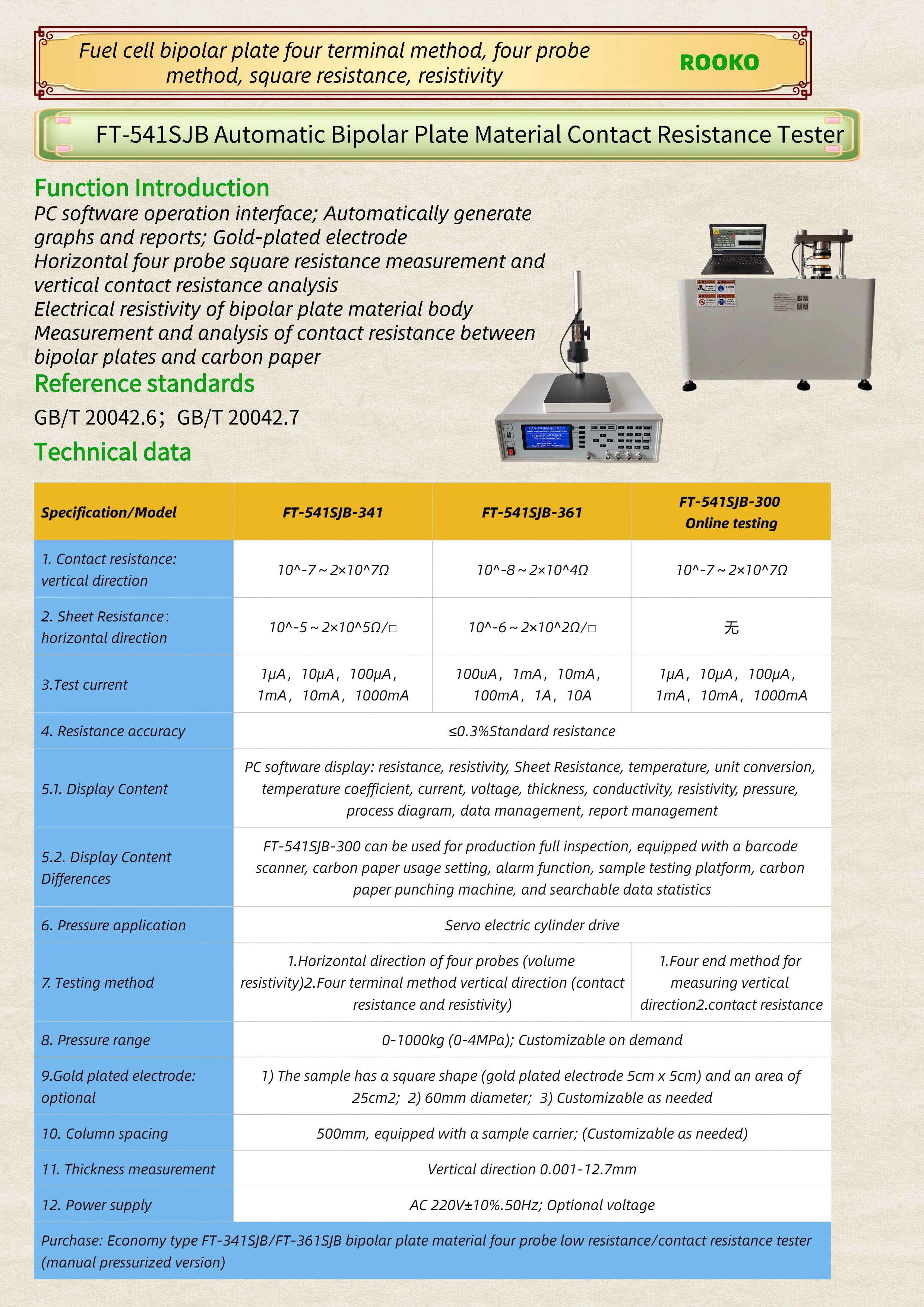 FT-541SJB Automatic Bipolar Plate Material Contact Resistance Tester