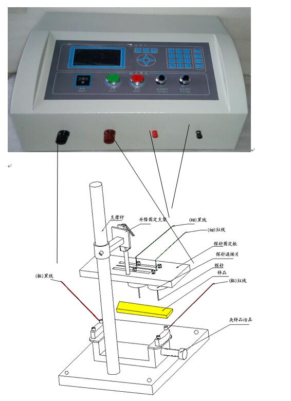 8. 測試探針為鎢針材質(zhì),間距偏差為1% 試樣尺寸10*10*64mm,探針間距為25mm;4*8*32mm探針間距為16mm.