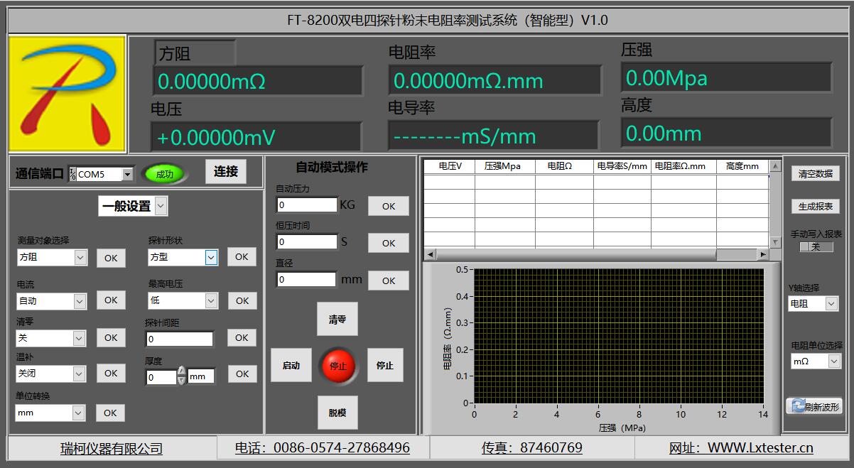 電阻、電阻率、方阻、溫度、單位切換、溫度系數(shù)、電流、電壓、探針形狀、探針間距、厚度 、電導(dǎo)率、圖譜顯示,壓力設(shè)定,壓強(qiáng),報(bào)表導(dǎo)出,波形刷新,時(shí)間設(shè)定,啟動(dòng)、停止、運(yùn)行、壓實(shí)密度.